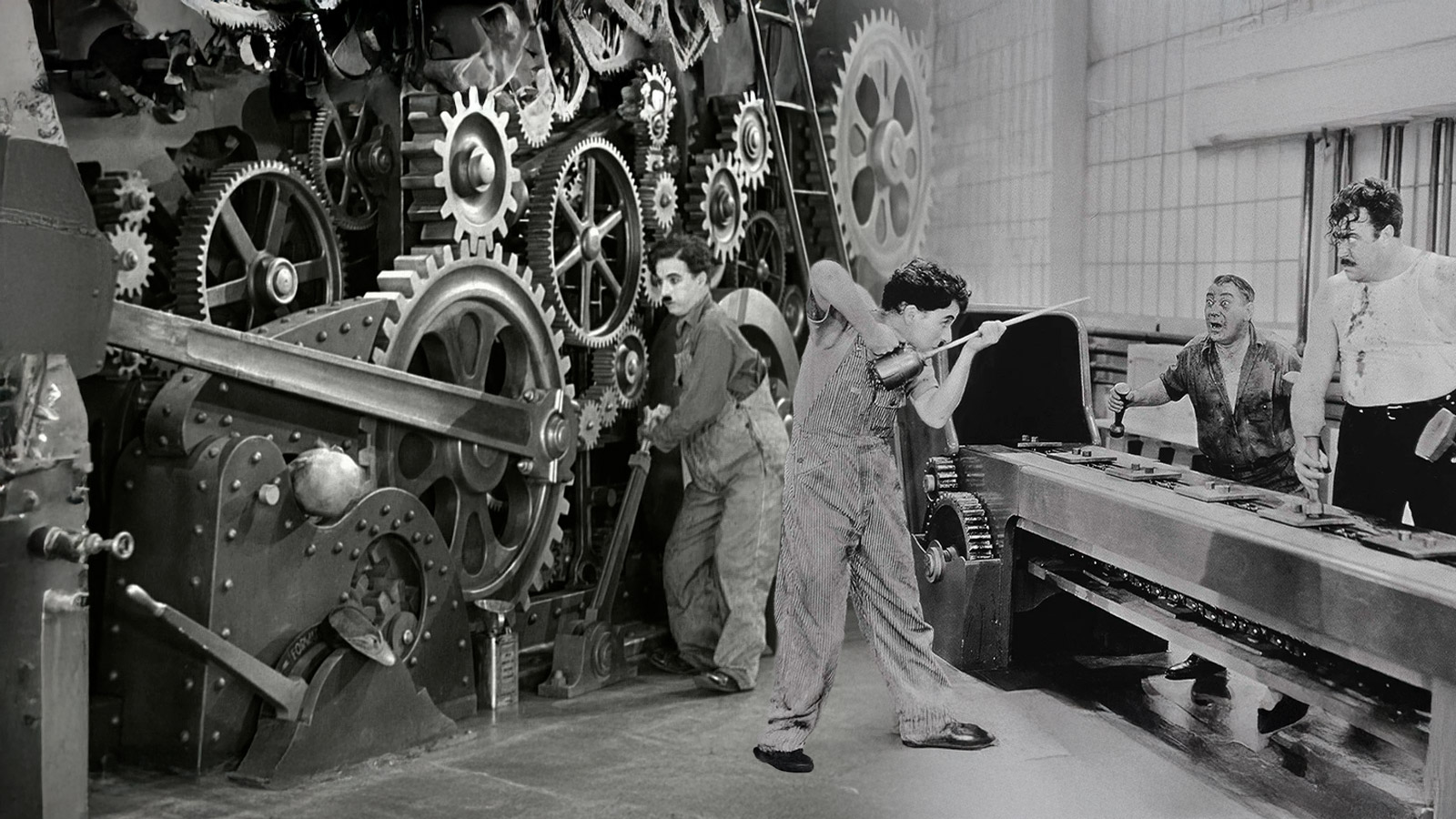 - Descrição "Tempos Modernos" é um filme mudo clássico de 1936, escrito, dirigido e estrelado por Charles Chaplin. A obra faz uma crítica ácida aos efeitos da Revolução Industrial sobre a classe trabalhadora, mostrando como a mecanização extrema das linhas de produção transforma o trabalhador em quase um “robô”. Chaplin interpreta um operário submetido a tarefas repetitivas e aceleradas, o que acaba levando ao seu esgotamento físico e psicológico. O filme também aborda temas como desemprego, exploração no ambiente de trabalho, alienação do trabalhador diante das máquinas, além das consequências negativas dessa rotina para a saúde mental. Cenas marcantes incluem desde greves e protestos até situações cômicas que, na real, escancaram problemas sérios que ainda persistem no mundo do trabalho — incluindo o desrespeito aos direitos trabalhistas.